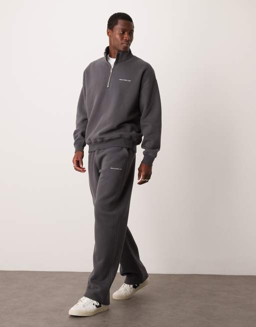 Abercrombie Fitch flocked timeless logo open hem joggers in dark grey co ord Very well made.