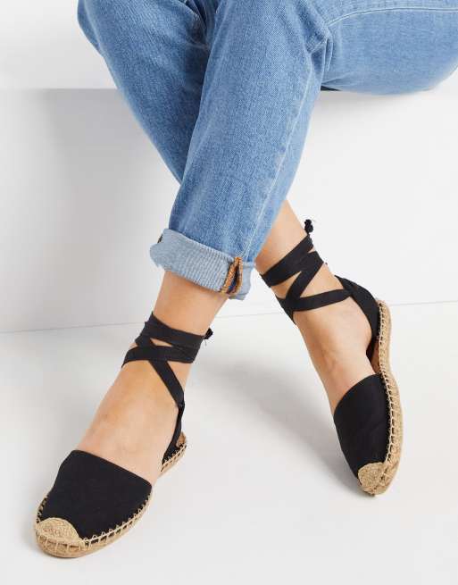 London Rebel Flache Espadrilles mit Beinschnurung in Schwarz ASOS Very well made.